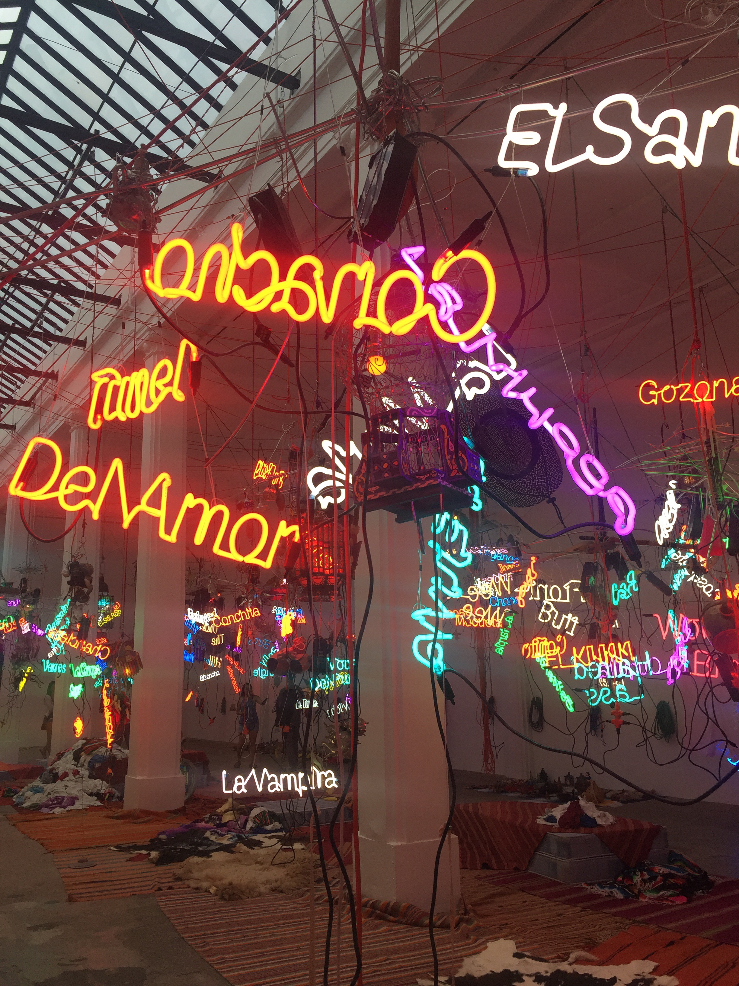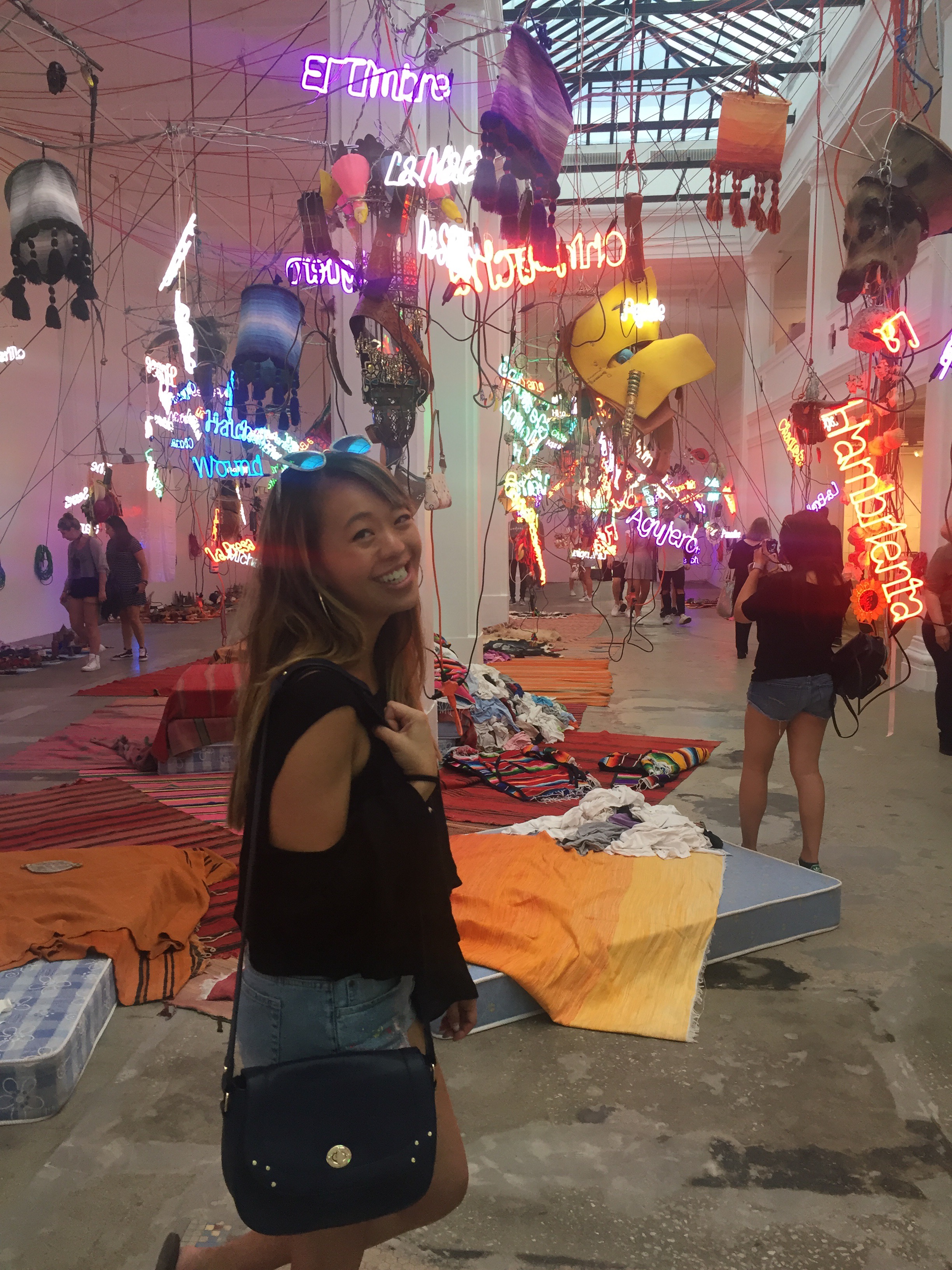 Last weekend, I checked out Hauser & Wirth in the Art District. I’ve seen some of the work on Instagram so of course I was intrigued because hello gotta go for the gram 🙂 also bonus: it’s free admission! We wandered in (woohoo no line!) and entered the “mind” of Jason Rhoades. The glowing words and seemingly randomly hung pieces definitely catches the eye. Fun fact: I was an art major in college so I know that most art isn’t “as it seems” so upon further investigation, we realized the glowing words were different slang words for female genitalia…not exactly what I expected but still interesting to wander around.