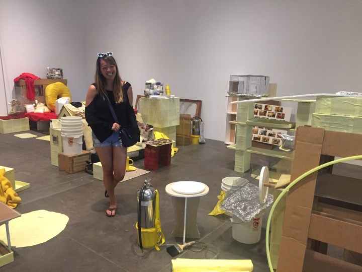 As we continued through the space, I realized a lot of Rhoades art is seemingly random (like seriously mini donuts and paper baskets!) but when you look deeper, you can see “inside his mind”. Again this might be from the years of art classes I was in, but I did learn to look a little deeper even if it might not be my favorite type of art. So check it out! And be sure to go to the outside garden. They have live chickens 🙂