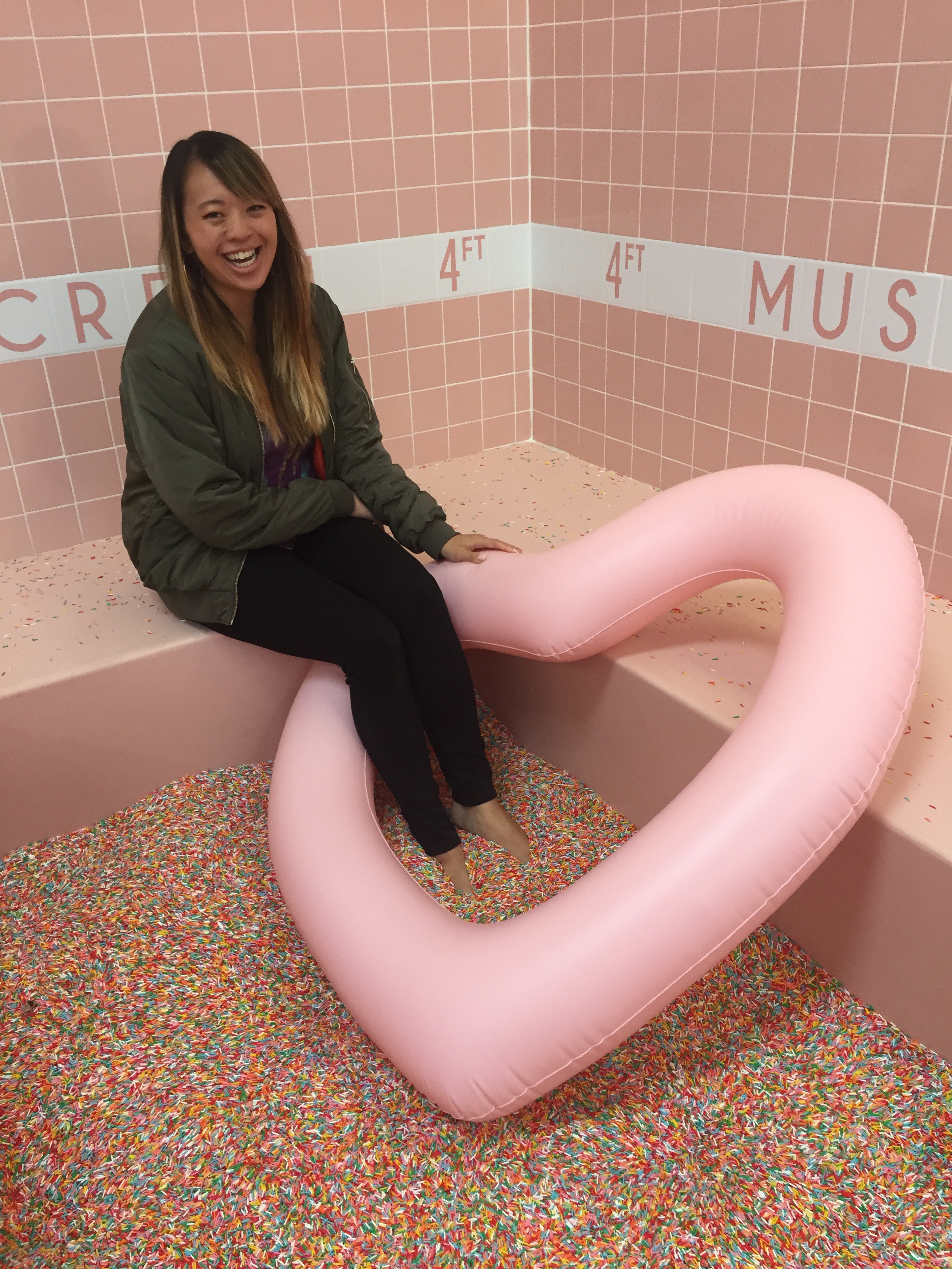 The most famous part of the museum is the sprinkle pool! Note that the sprinkle pool isn’t that large and you’re only given 2-3 minutes in there. I recommend knowing what “pose” you want to do for your photo ahead of time. Also move quickly if you want a floaty because there are only two. I’ll be real honest, the germaphobe in me had a hard time with this sprinkle pool because I don’t know who or what has been in there and how they heck do they clean a sprinkle pool…with sprinkle chlorine?! Haha but I did suck it up and dipped my toes in…had to do it for Instagram 🙂
