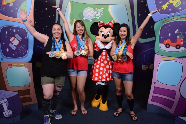 Now back to this race which was all about princesses (my favorite!) with my cousin (we did the marathon together!) and her friend (first race for her!) so I signed up without hesitation. The weekend came and next thing I knew it was time to wake up at 3am for the 10k. By the way, I honestly think the hardest part of Disney races is waking up at the crack of dawn or actually before dawn 😛 we put on our matching outfits and we were on our way. The 10k was a relative breeze with picture stops with characters. I tried to keep a steady pace since I knew we had another race the next day. It didn’t work because after the race we all needed massages 😛