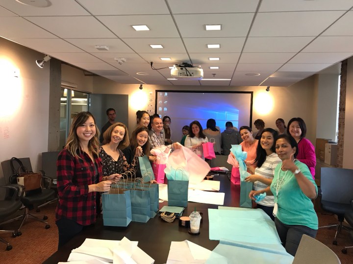 Also every November, MOD host baby showers for families who never had a chance to celebrate their babies and who also are missing essential items. Ergobaby held a packing party where we got requested items such as carriers, swaddlers, onesies, pacifiers and more together.