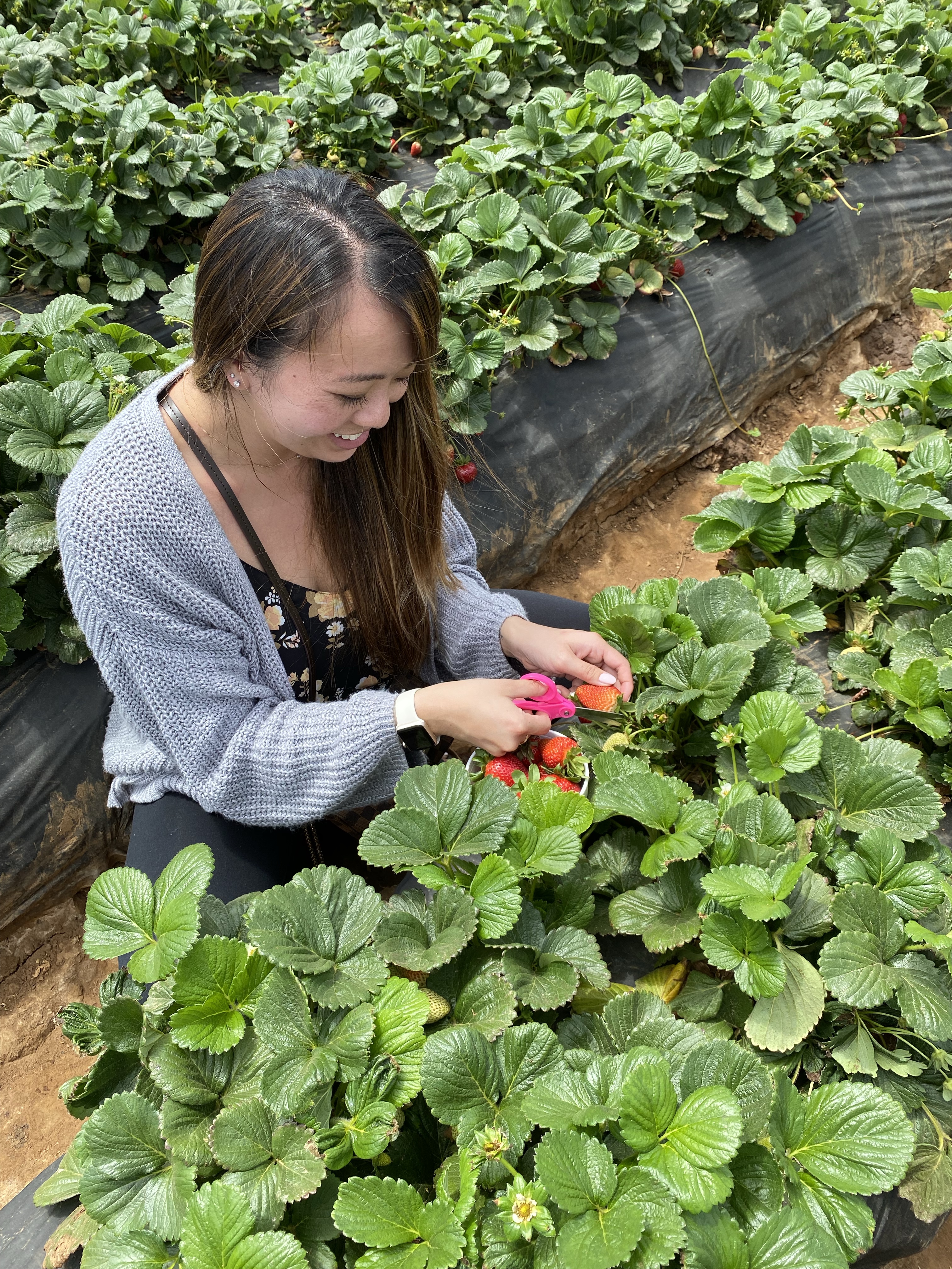 Next we headed to strawberry picking which is literally across the street from the flower fields! Honestly I thought it was overhyped because I’m paying to do the work…however I was pleasantly surprised that by being able to choose each strawberry that goes in my bucket (ps the “bucket” is really a tiny styrofoam thing and it costs $10…) so all of them were sweet and red! Cost to enter is $5, then it’s another $5 to enter the strawberry picking zone OR $10 to enter the strawberry zone + the “bucket”. It is a fun activity to do, but wear clothes you don’t mind getting dirty as it’s very dusty and somewhat muddy.