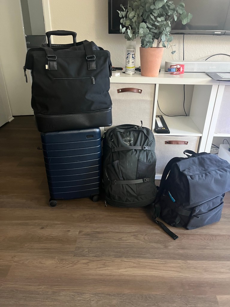 4) try and pack light: hubby and I have always been carry on only luggage people. It didn’t matter if we were somewhere for 3 days or 2 weeks, we only brought carry on luggage – international Away luggage and Osprey backpack. With baby, I thought it would change, but it didn’t. To this everyone says we’re crazy 😂 I’ve never been an over packer due to traveling often for a past role so I’ve learned to literally write out every outfit I plan to wear each day we’re gone. This helps me figure out what I can mix and match so I don’t have to bring more. I did this for baby boy too with 2 spare outfits because you just never know! We also got the king of all diaper bags, the Beis Ultimate Diaper Bag, which is a little large for daily use, but perfect for travel. In went snacks, toys, nursing cover, baby headphones and wipes. Our carry ons had our own clothing (I had 3 long sleeves, 3 tshirts, 2 tanks, 1 cardigan, 1 jacket, 2 leggings and undergarments) and diapers. We brought roughly 60 diapers in total to cover us for the time being with the plan to buy more overseas if needed. Also important is that the hotel or Airbnb has a washer/dryer. We planned to do laundry every 3-4 days which helps a lot for less clothing. We ended up doing it three times in the 2 weeks. Hubby and I both think we could have done with one less shirt, but overall calculated well. The carry on only sounds crazy, but did make walking around easier with less things to drag. Buying stuff was a bit difficult, but I managed to squeeze stuff in 😇